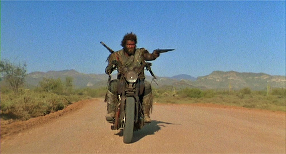 Meanwhile, Nicolas Cage and Holly Hunter give solid performances as the wannabe parents, straddling the line between heroic protagonists and baby-napping villains. While their own virtue is ambiguous, they must contend with, and thus are contrasted with, some truly monstrous villains that bring the Whimsy-balancing Dark by the bucketload.