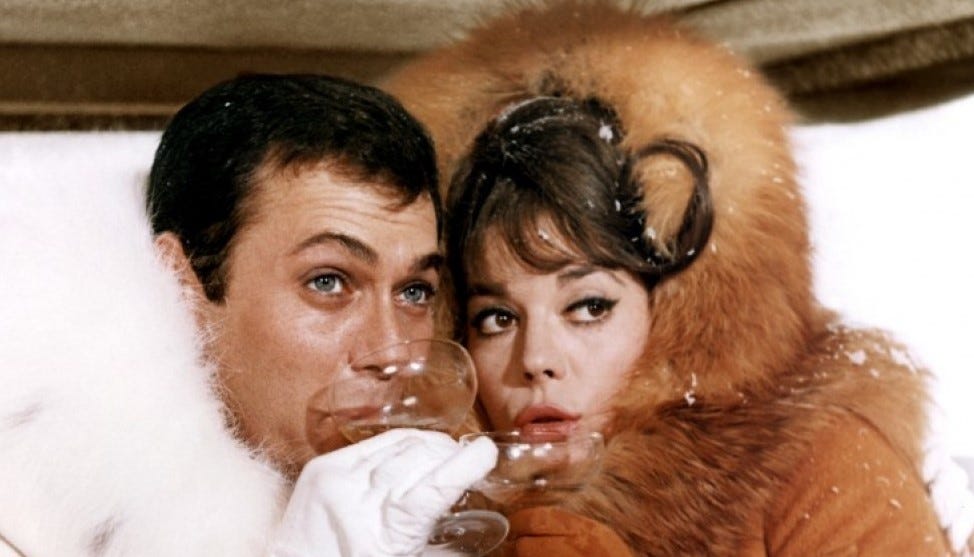 Meanwhile, Curtis as clean cut hero Leslie Gallant shares a predictable but sweet romance with Natalie Wood playing Maggie DuBois. Maggie is the stereotypical girl-who-doesn’t-need-a-man, and as we expect she finds it difficult to resist the charms of “The Great Leslie”.