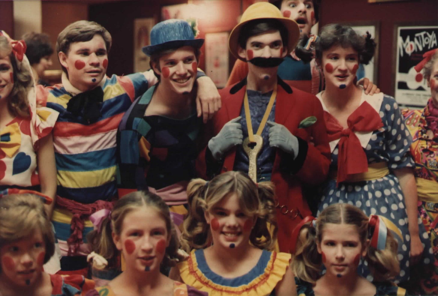 Like probably most of my readers, I saw this film on television more than once as a kid. I think I read the book once too, but I wouldn't swear to it. In college, I bent my knees to appear shorter and found a funny squeaky voice to land a role as the Mayor of the Munchkins in a stage musical based on this film. (I’m in the yellow hat.)